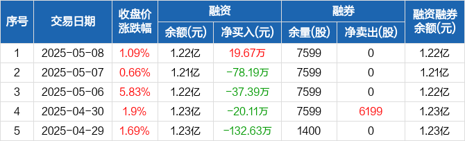 芳源股份:融资净买入19.67万元,融资余额1.22亿元(05-08)