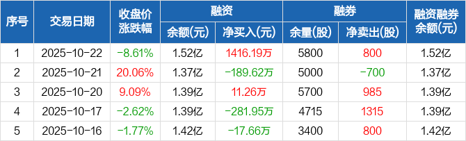 芳源股份:融资净买入1416.19万元,融资余额1.52亿元(10-22)