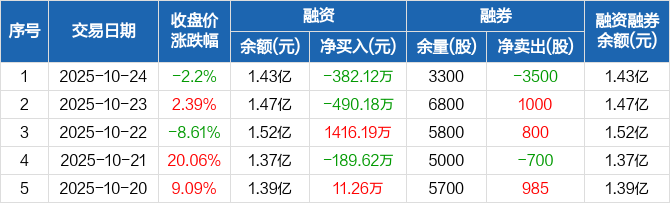 芳源股份:融资净偿还382.12万元,融资余额1.43亿元(10-24)