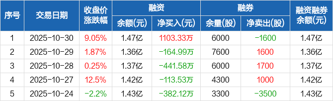 芳源股份:融资净买入1103.33万元,融资余额1.47亿元(10-30)