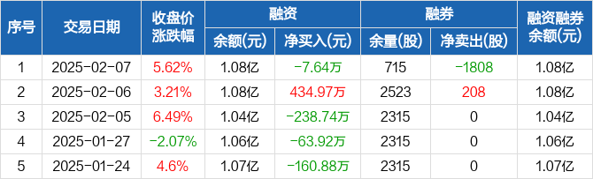 麒麟信安:融资净偿还7.64万元,融资余额1.08亿元(02-07)