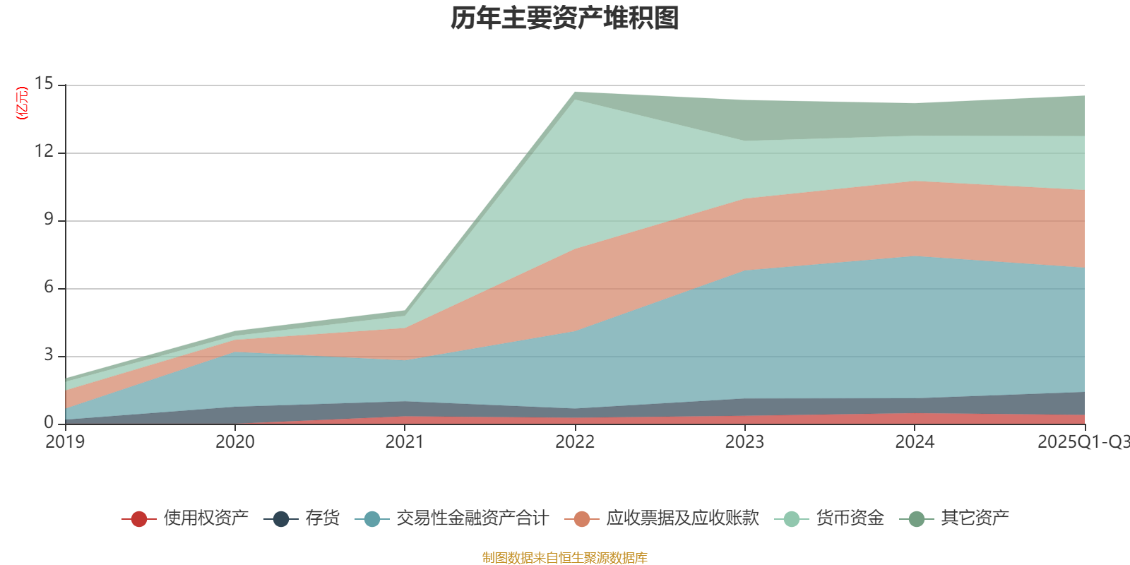 资产重大变化方面,截至2025年三季度末,公司交易性金融资产合计较上年末减少12.56%,占公司总资产比重下降6.48个百分点;长期股权投资较上年末增加262.27%,占公司总资产比重上升2.71个百分点;货币资金较上年末增加19.63%,占公司总资产比重上升2.37个百分点;存货较上年末增加54.73%,占公司总资产比重上升2.36个百分点。