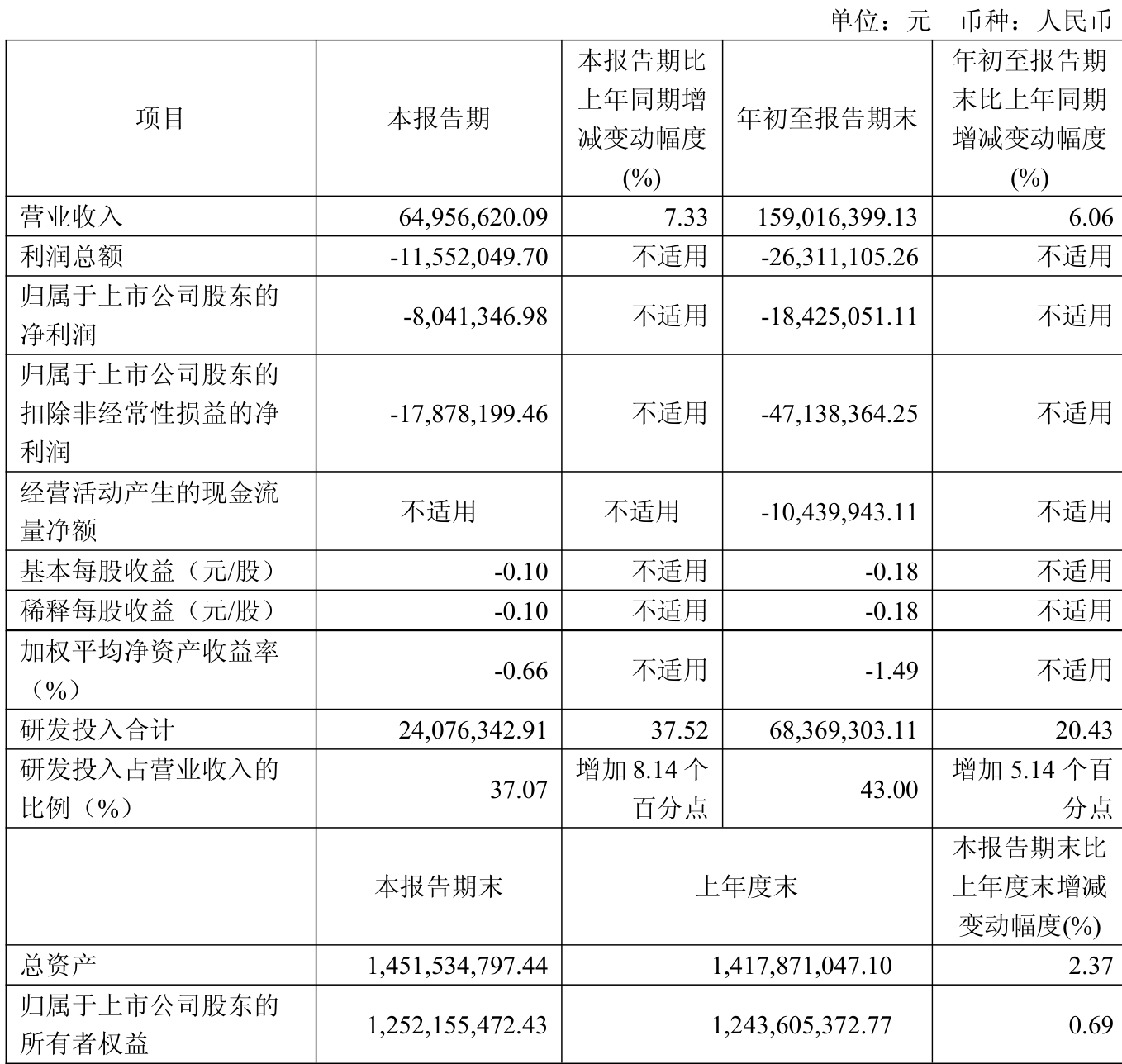 中证智能财讯麒麟信安(688152)10月21日披露2025年第三季度报告。前三季度公司实现营业总收入1.59亿元,同比增长6.06%;归母净利润亏损1842.51万元,上年同期亏损2293.55万元;扣非净利润亏损4713.84万元,上年同期亏损3814.44万元;经营活动产生的现金流量净额为-1043.99万元,上年同期为-3263.5万元;报告期内,麒麟信安基本每股收益为-0.18元,加权平均净资产收益率为-1.49%。