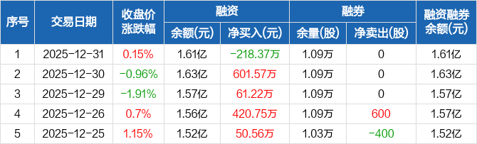 麒麟信安:融资净偿还218.37万元,融资余额1.61亿元(12-31)
