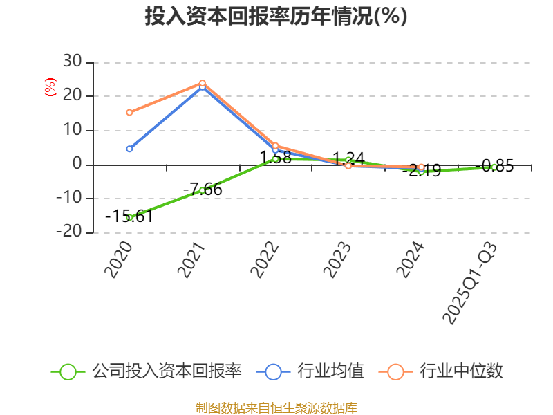 盈利能力方面, 2025年前三季度公司加权平均净资产收益率为0.22%,同比上升1.02个百分点。公司2025年前三季度投入资本回报率为-0.85%,较上年同期上升0.92个百分点。