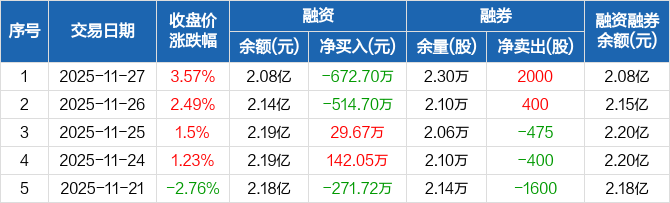 唯捷创芯:融资净偿还672.7万元,融资余额2.08亿元(11-27)