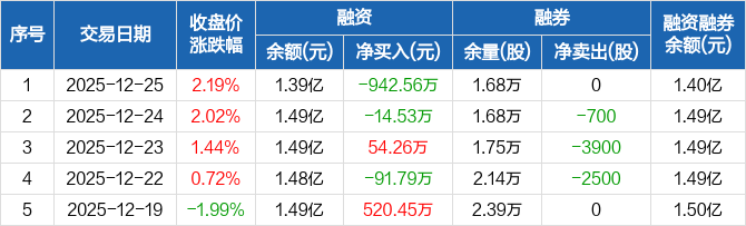 唯捷创芯:融资净偿还942.56万元,融资余额1.39亿元(12-25)