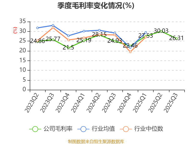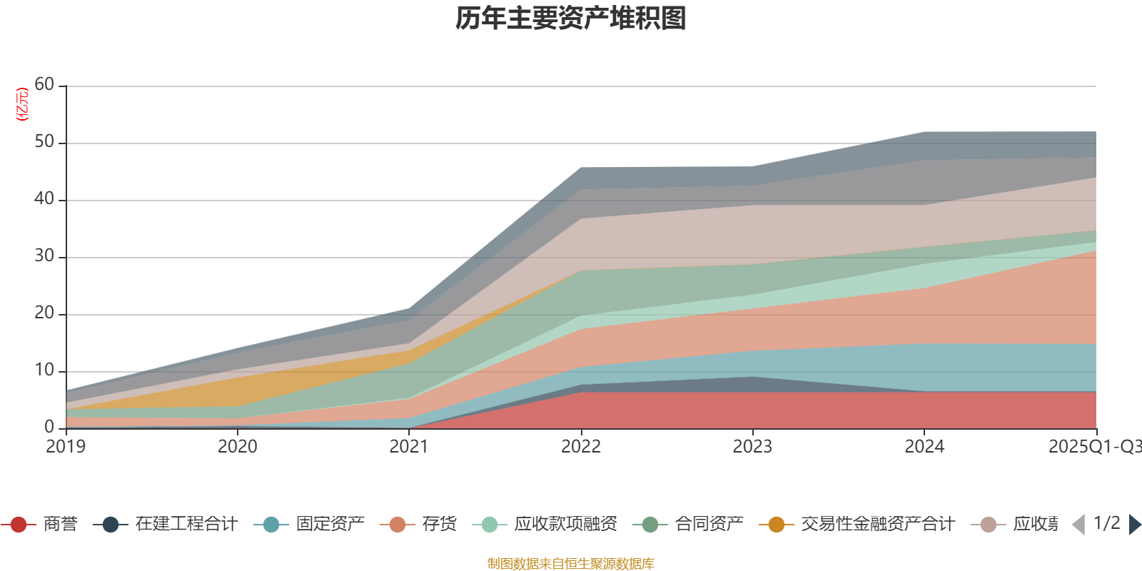 资产重大变化方面,截至2025年三季度末,公司存货较上年末增加67.9%,占公司总资产比重上升12.7个百分点;货币资金较上年末减少55.03%,占公司总资产比重下降8.33个百分点;应收款项融资较上年末减少64.96%,占公司总资产比重下降5.25个百分点;应收票据及应收账款较上年末增加26.51%,占公司总资产比重上升3.73个百分点。