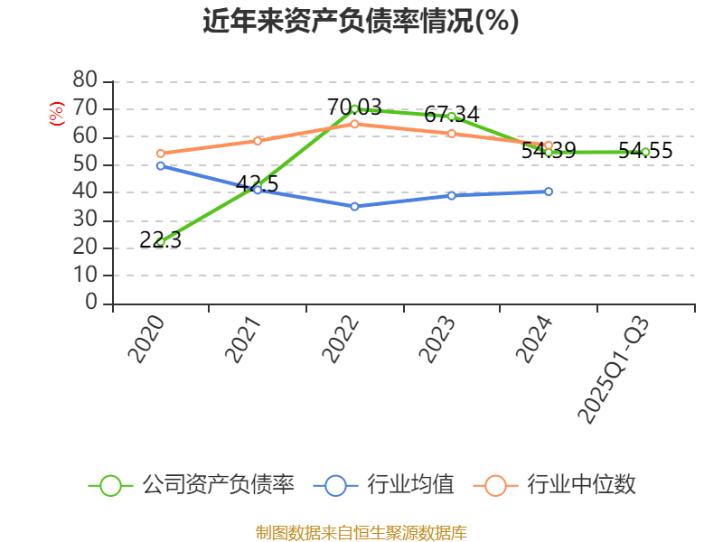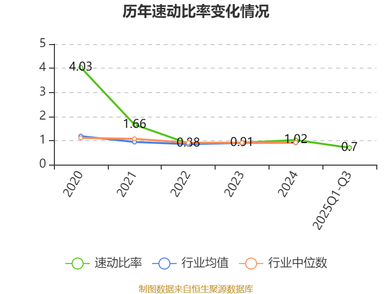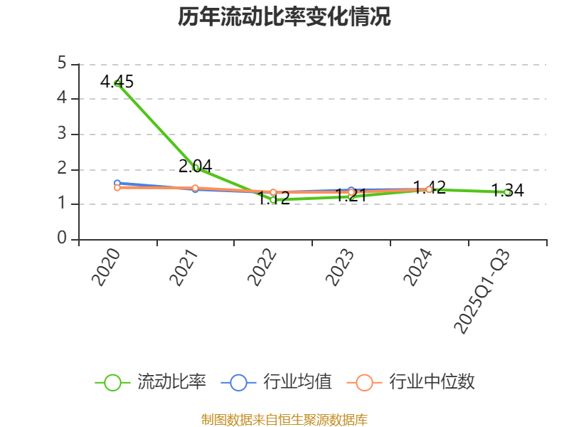 2025年前三季度,公司流动比率为1.34,速动比率为0.7。