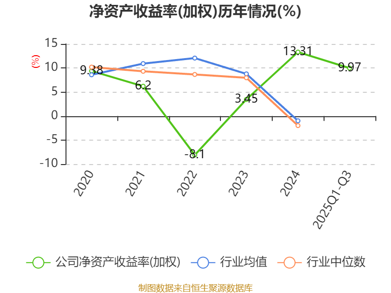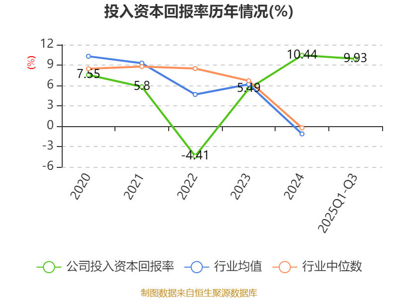 盈利能力方面, 2025年前三季度公司加权平均净资产收益率为9.97%,同比下降1.86个百分点。公司2025年前三季度投入资本回报率为9.93%,较上年同期上升0.74个百分点。