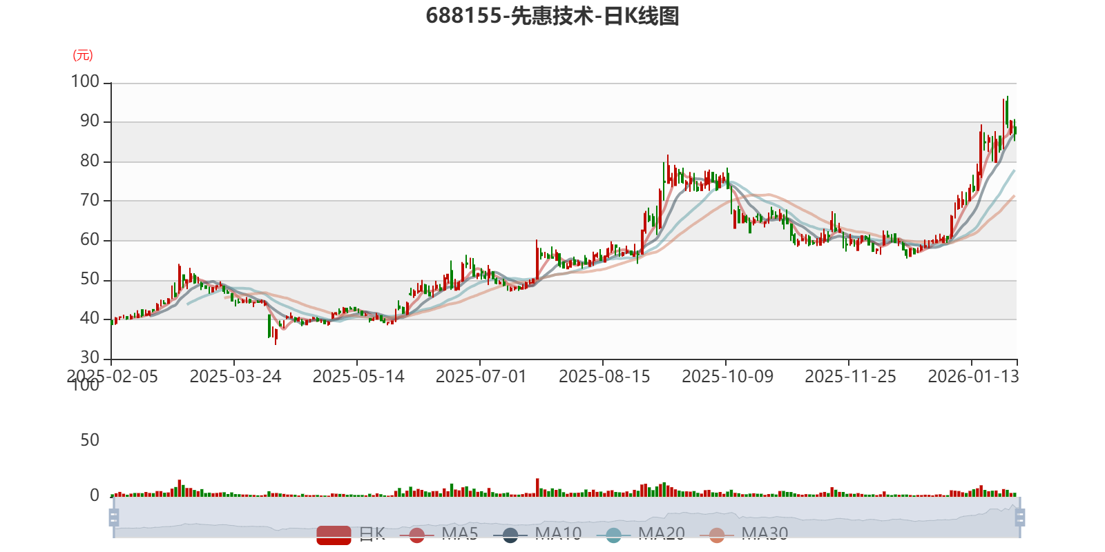 中证智能财讯先惠技术(688155)1月28日晚间披露2025年度业绩预告,预计2025年归母净利润3.5亿元,同比增长56.93%;扣非净利润预计3.4亿元,同比增长64.07%。以1月28日收盘价计算,先惠技术目前市盈率(TTM)约为31.46倍,市净率(LF)约5.11倍,市销率(TTM)约4.3倍。
