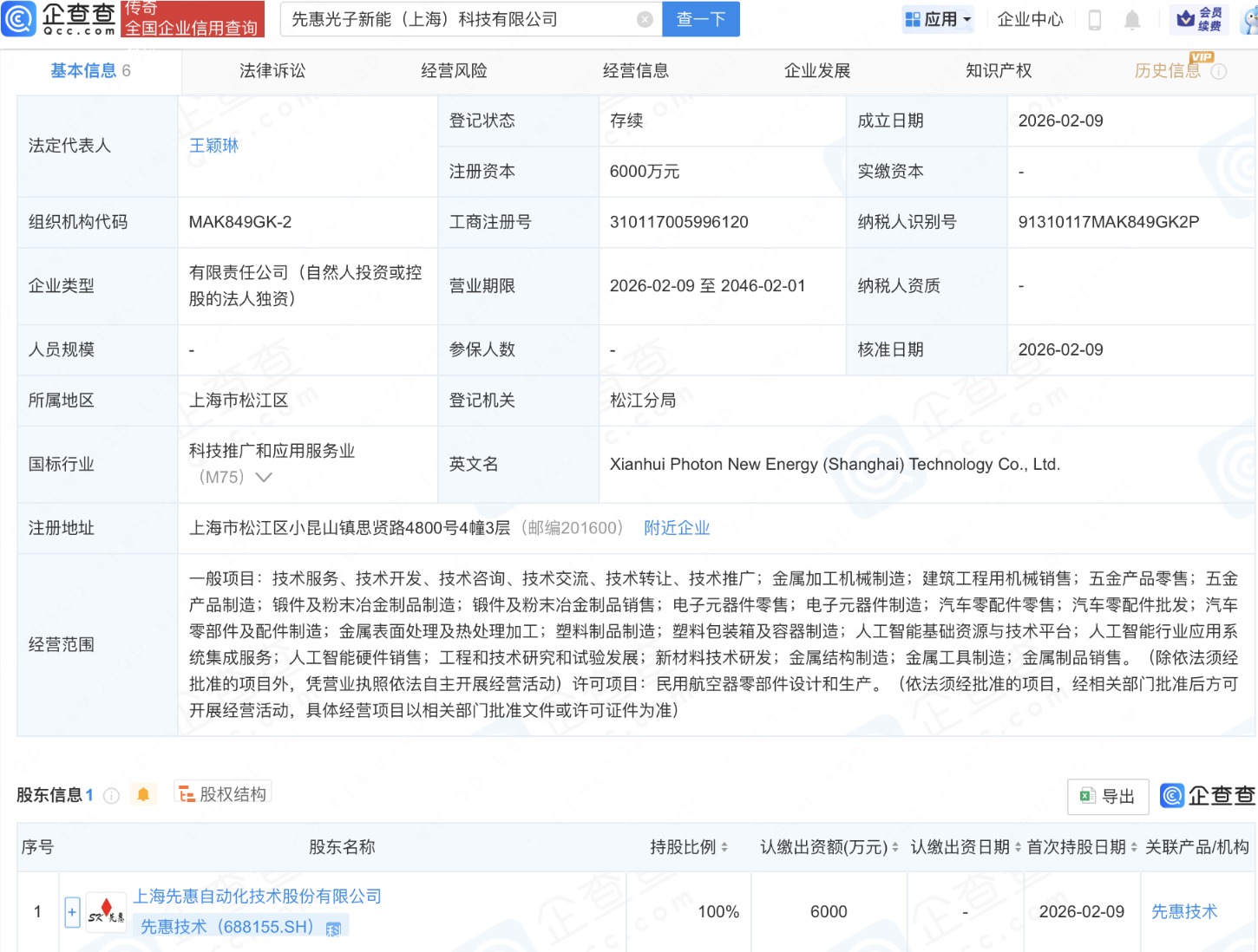 据工商登记显示,本次先惠技术布局的光子新能科技相关公司,其业务范围涵盖人工智能行业应用系统集成服务、人工智能硬件销售等多个领域。