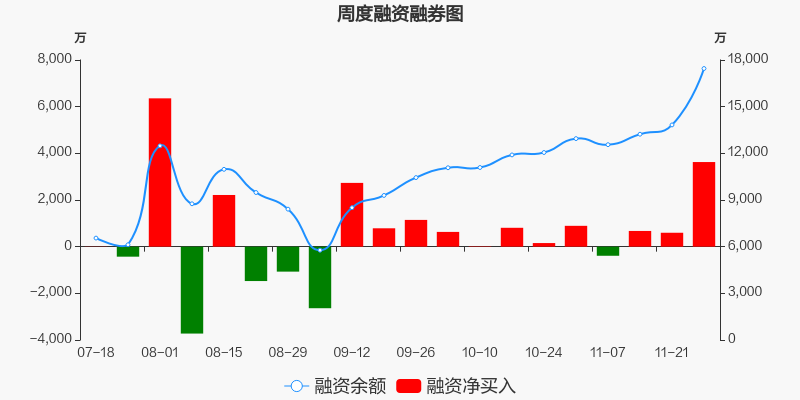 松井股份本周(2025/11/24-2025/11/28)累计涨幅达19.91%,截至11月28日最新股价报收34.39元。从增量上来看,11月24日至11月28日融资买入交易规模1.1亿元,融资偿还规模7391.28万元,期内融资净买入3626.3万元。从存量上来看,截止11月30日,松井股份融资融券余额1.75亿元,其中融资余额规模1.75亿元,融券余额规模0元。