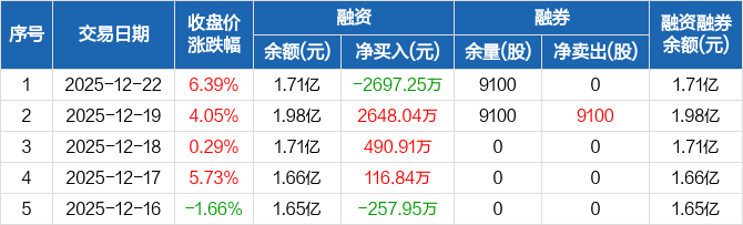 松井股份:融资净偿还2697.25万元,融资余额1.71亿元(12-22)