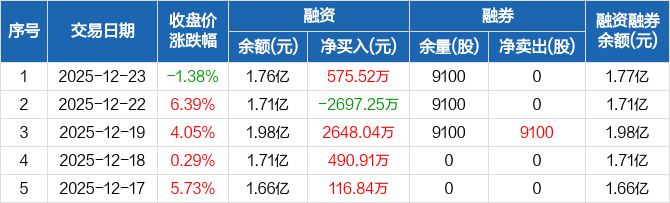 松井股份:融资净买入575.52万元,融资余额1.76亿元(12-23)