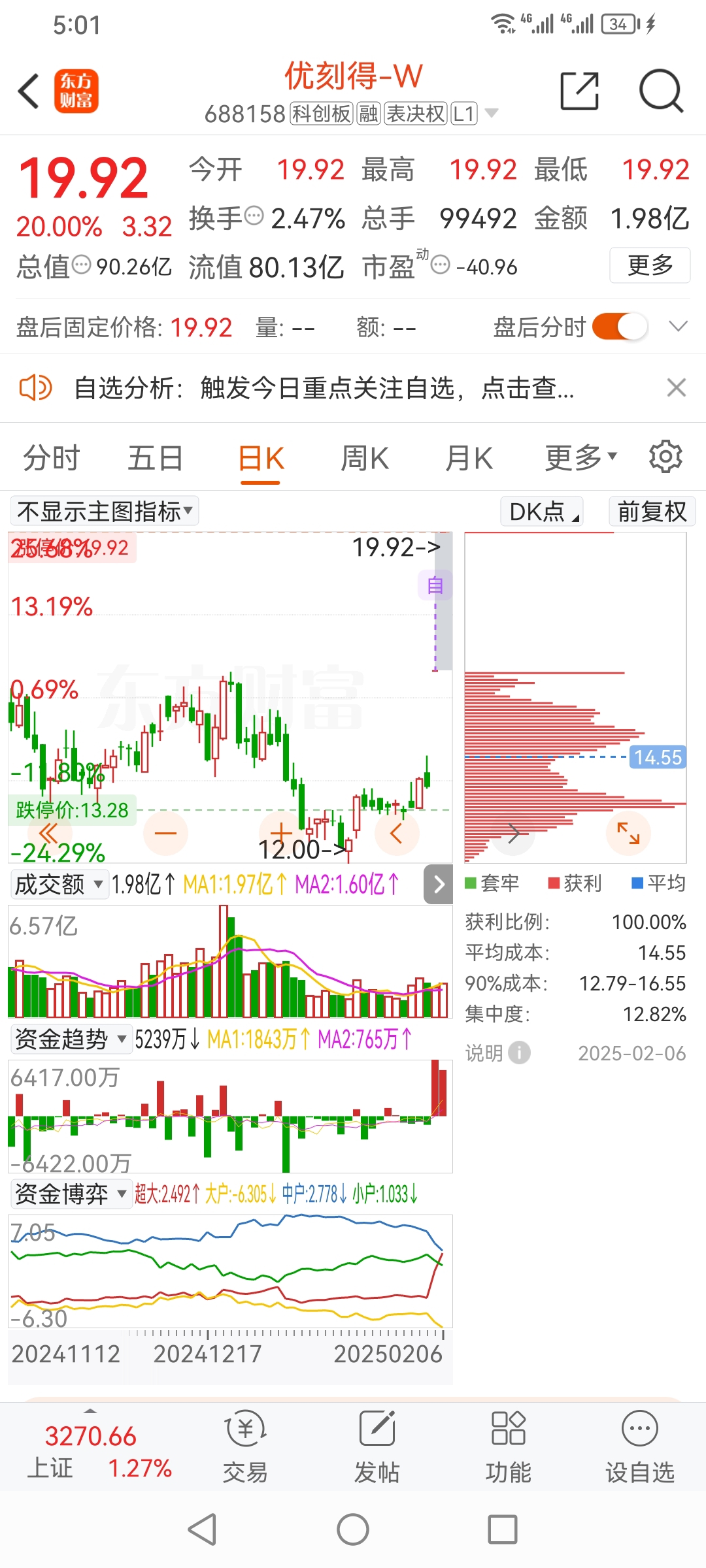 方军688158,这个股票,评价最高。科创板,2个一字涨停板。