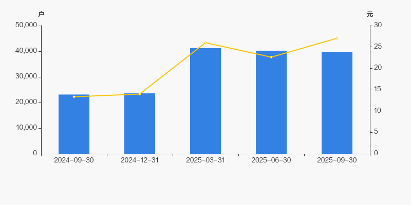 2024年9月30日至今,公司股东户数显著大幅增长,区间涨幅达71.99%。2024年9月30日至2025年9月30日区间股价上涨102.70%。