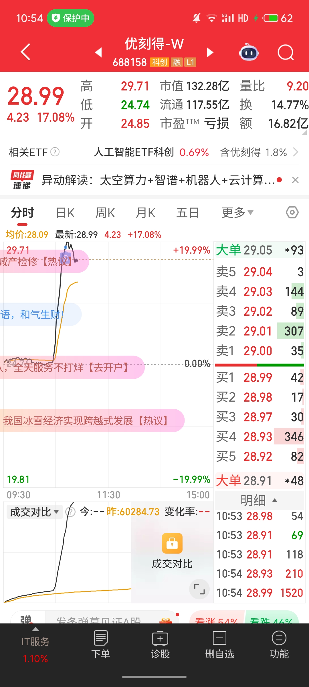 $优刻得-W(SH688158)$ 拿了2个多月,赚了20个点,留下的发财