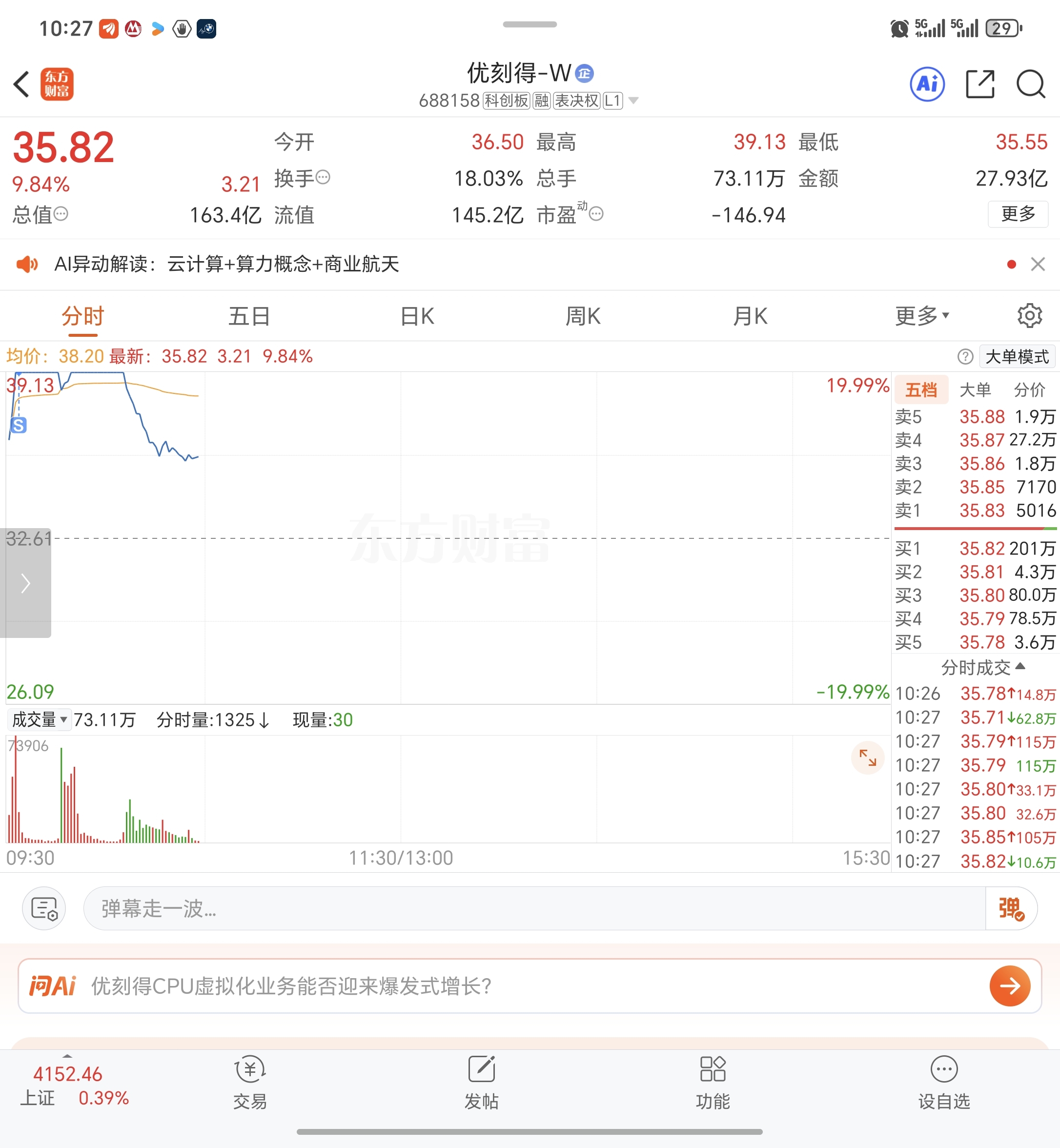 $优刻得-W(SH688158)$ 搞的都不敢做T了