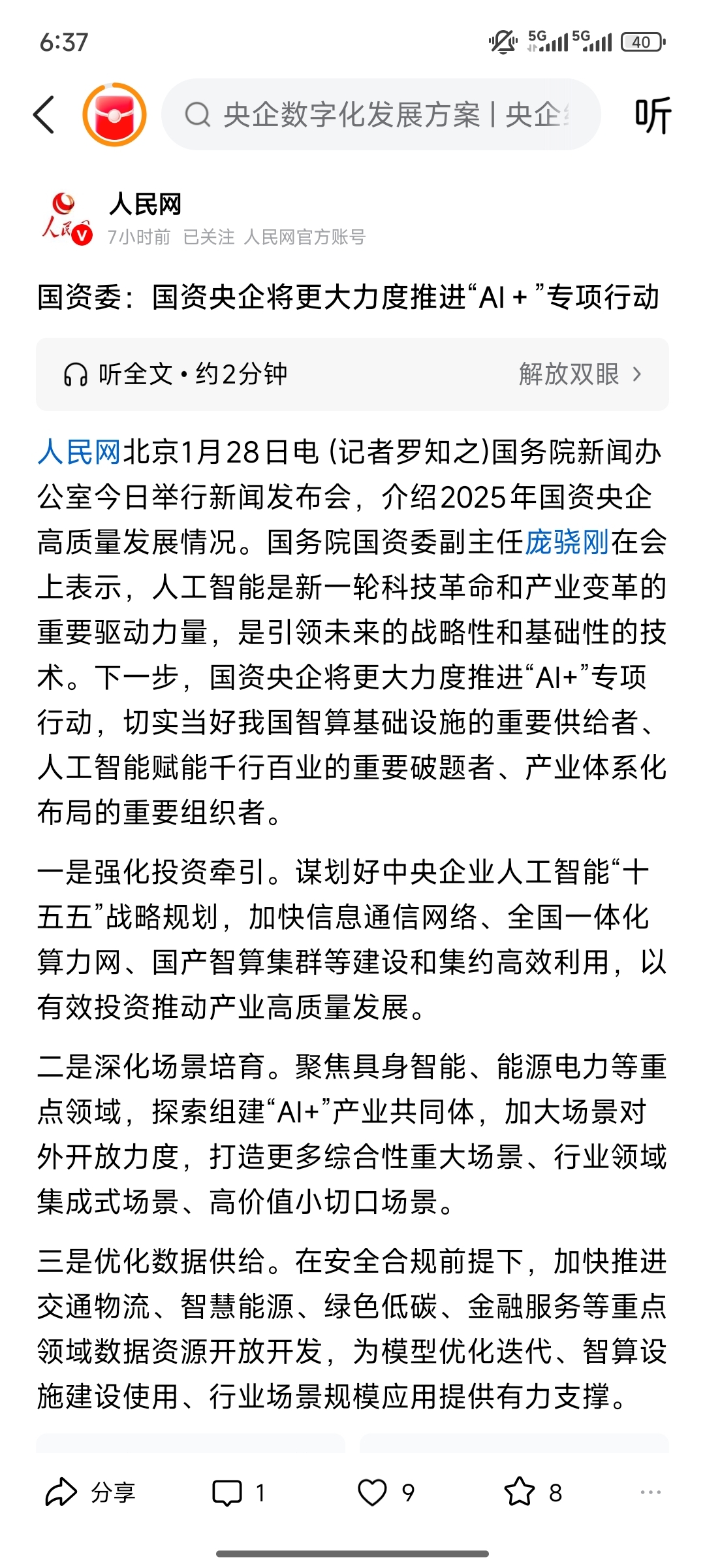 下一步,国资央企将更大力度推进“AI+”专项行动: