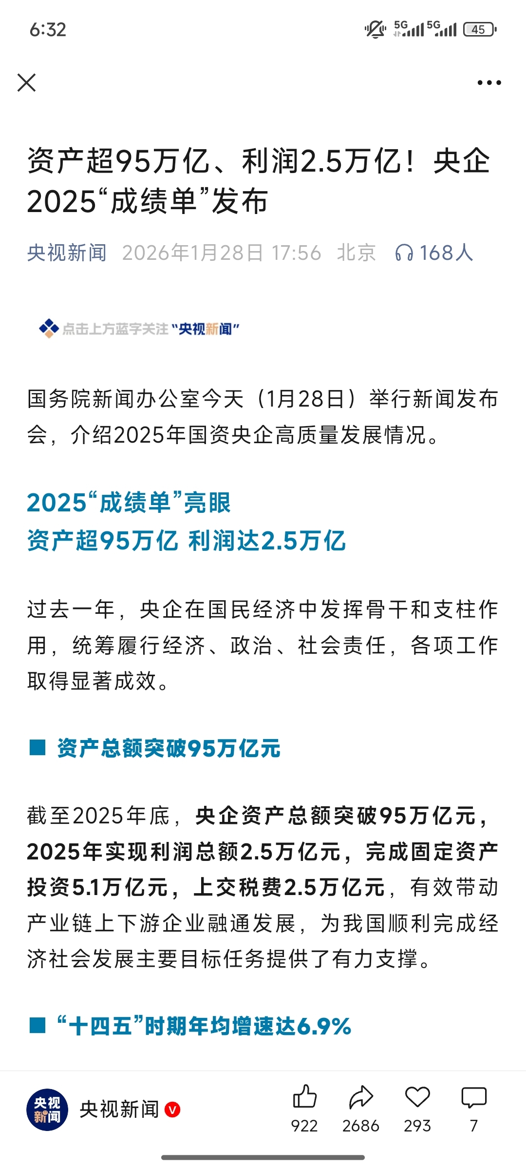 国务院新闻办公室今天(1月28日)举行新闻发布会,介绍2025年国资央企高质量发展情况。