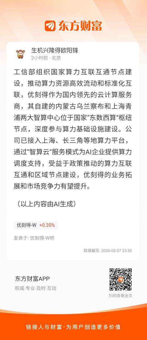 工信部组织国家算力互联互通节点建设,推动算力资源高效流动和标准化互联,优刻得作为国内领先的云计算服务商,其自建的内蒙古乌兰察布和上海青浦两大智算中心位于国家“东数西算”枢纽节点,深度参与算力基础设施建设。公司已接入上海、长三角等地算力平台,通过“智算云”服务模式为AI企业提供算力调度支持,受益于政策推动的算力互联互通和区域节点建设,优刻得的业务拓展和市场竞争力有望提升。