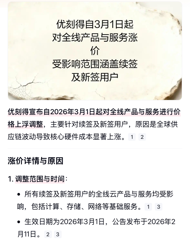 云厂商涨价第一枪!对比网宿科技、宏景科技涨价路径,优刻得有40%的溢价空间!叠加