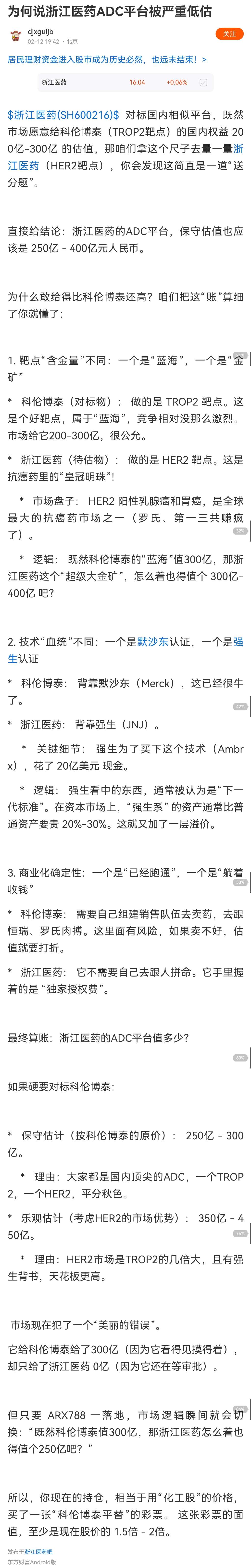 浙江医药ADC平台被严重低估,核心是市场仍按“维生素周期股”估值,完全没给新码生物 ARX788 自主定点偶联平台应有的创新药溢价 。
