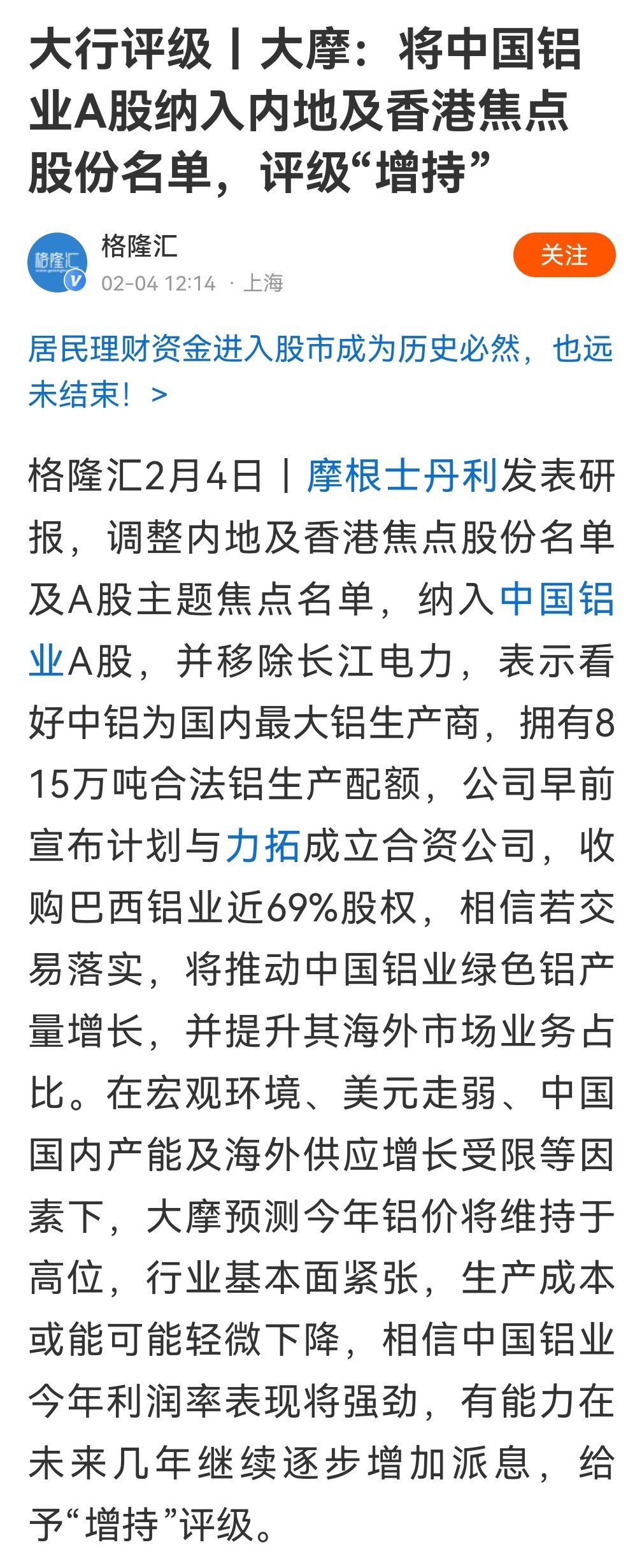 本报讯 (记者贺王娟)2026年1月30日,中国铝业股份有限公司(以下简称“中国铝业”)发布公告,围绕增强资源保障能力、优化产业布局,拟收购巴西铝业公司68.596%股权。此次交易以稳健审慎的市场化方式并购。