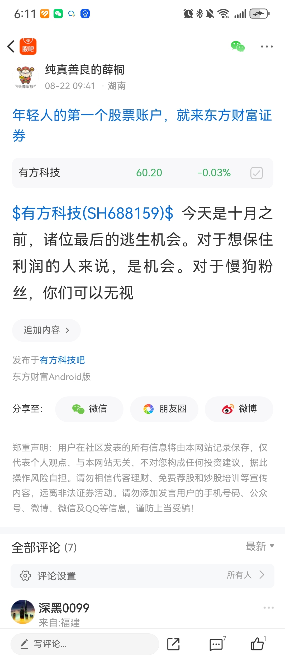 温馨提示: 1.根据《证券法》规定,禁止编造、传播虚假信息或者误导性信息,扰乱证券市场;2.用户在本社区发表的所有资料、言论等仅代表个人观点,与本网站立场无关,不对您构成任何投资建议。用户应基于自己的独立判断,自行决定证券投资并承担相应风险。《东方财富社区管理规定》
