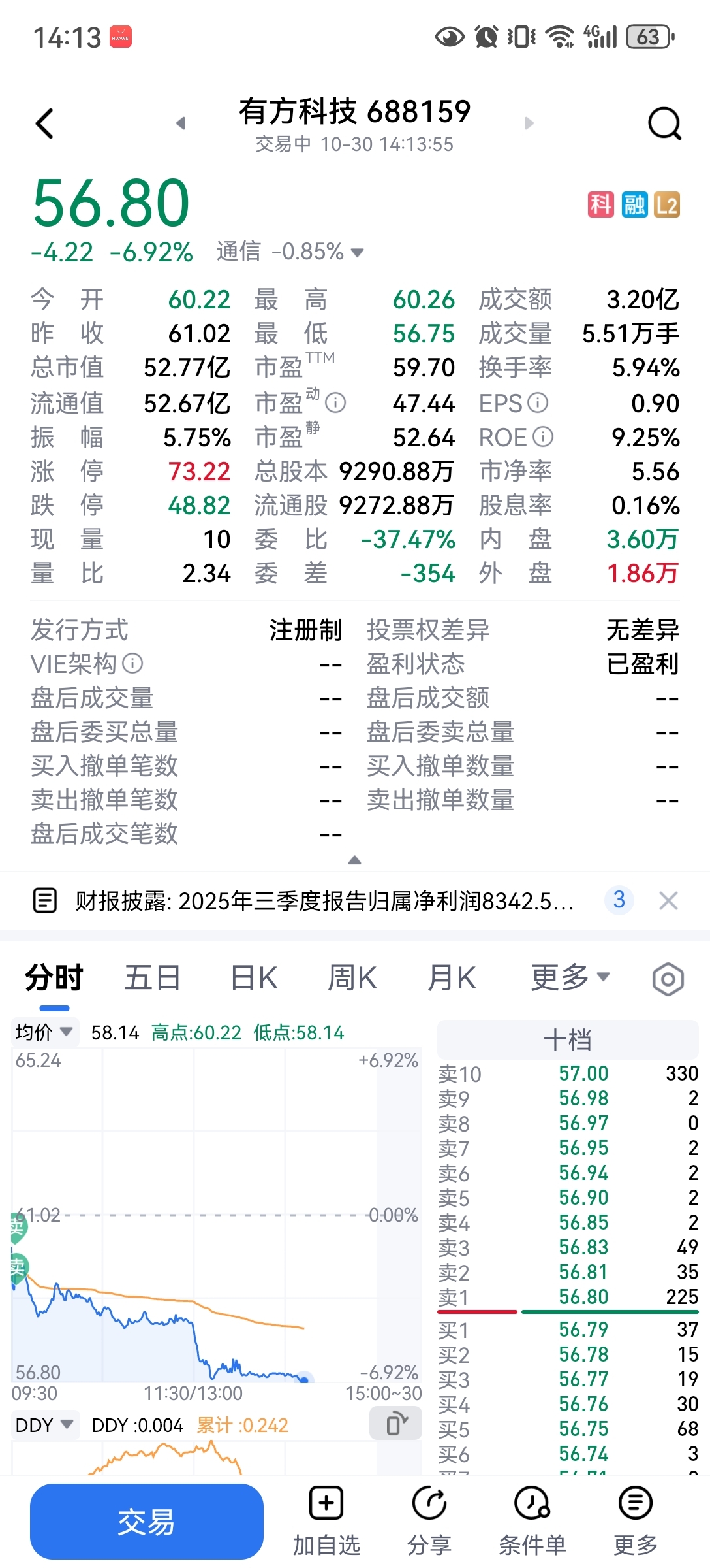 $有方科技(SH688159)$  得亏一早竞价出掉了,不然多亏五六万