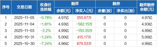 有方科技:融资净买入355.67万元,融资余额4.97亿元(11-05)