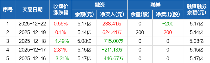 有方科技:融资净买入238.41万元,融资余额5.17亿元(12-22)