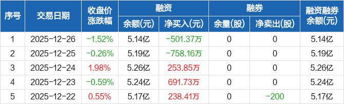 有方科技:融资净偿还501.37万元,融资余额5.14亿元(12-26)