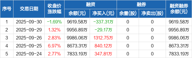 巨一科技:融资净偿还337.31万元,融资余额9619.58万元(09-30)