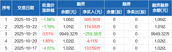 巨一科技:融资净买入505.36万元,融资余额1.06亿元(10-23)