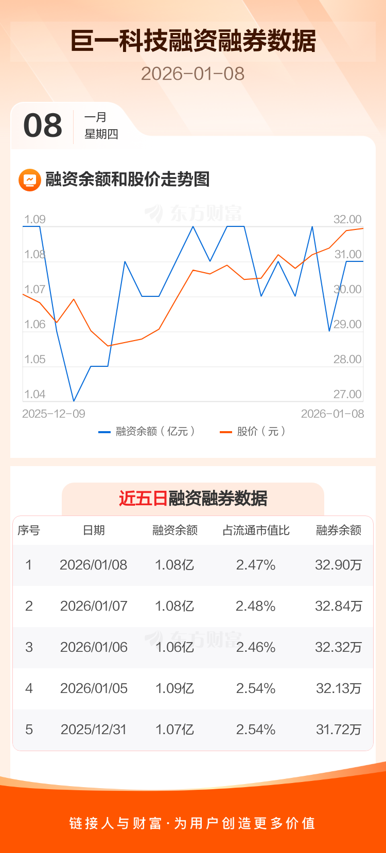 交易所最新数据显示,巨一科技于2026年1月8日获融资买入626.68万元,融资偿还667.05万元,当日融资净偿还40.37万元。目前,该股融资余额1.08亿,占流通市值比例为2.47%。