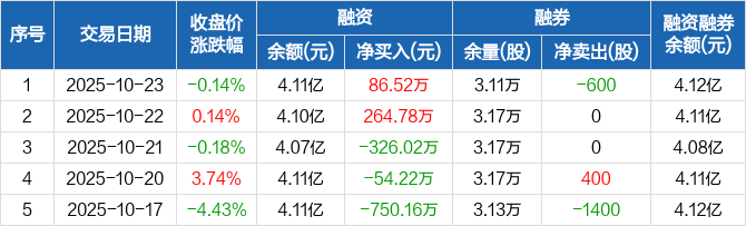 埃夫特:融资净买入86.52万元,融资余额4.11亿元(10-23)