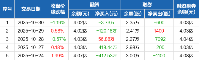 埃夫特:融资净偿还3.73万元,融资余额4.02亿元(10-30)