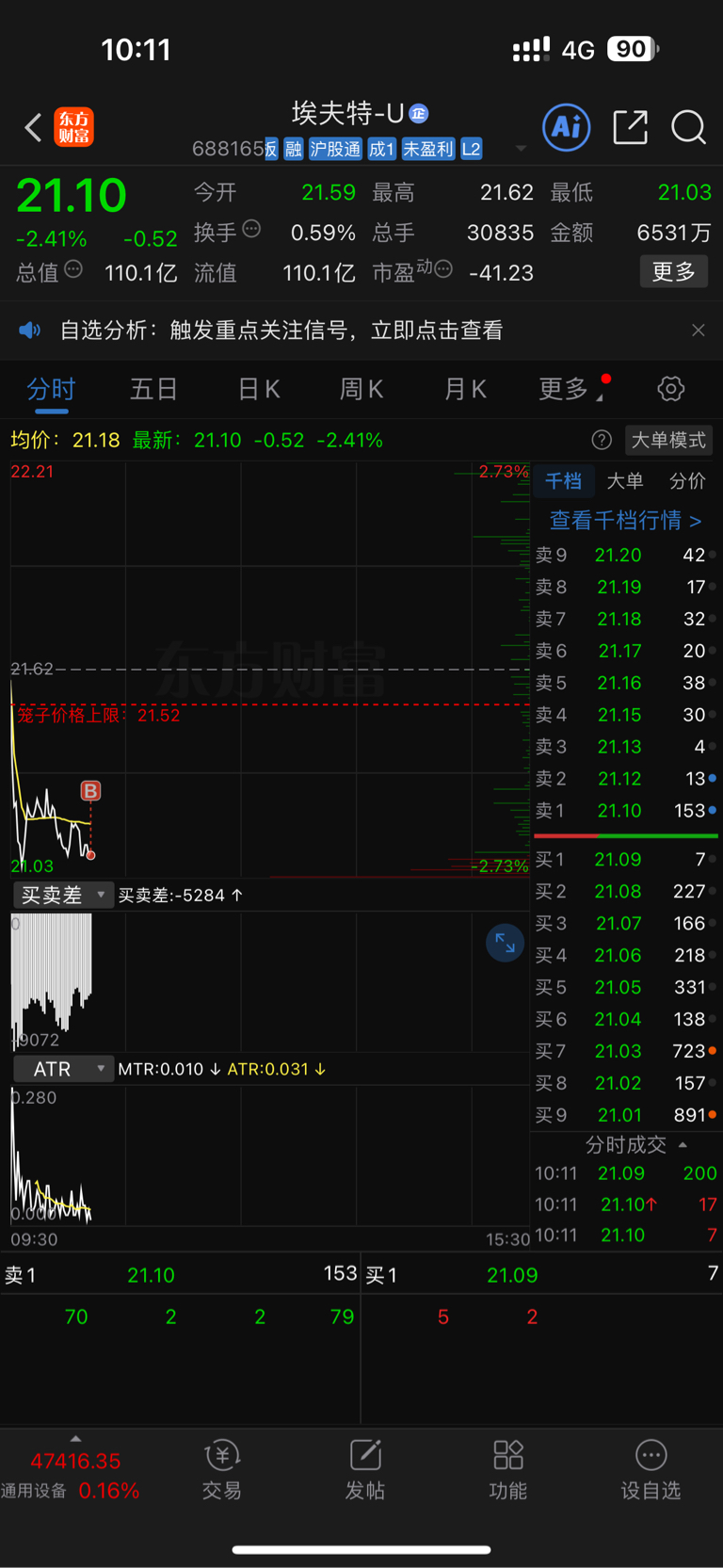$埃夫特-U(SH688165)$ 兄弟们昨天22块多走的,今天我又吸回来了,和它卯上了