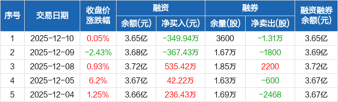 埃夫特:融资净偿还349.94万元,融资余额3.65亿元(12-10)
