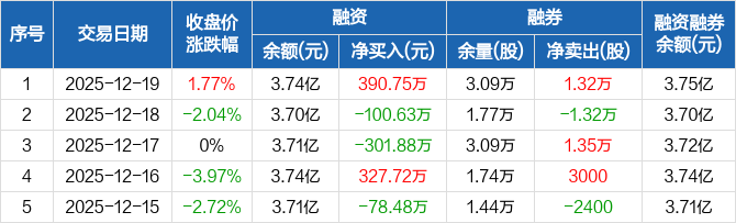 埃夫特:融资净买入390.75万元,融资余额3.74亿元(12-19)