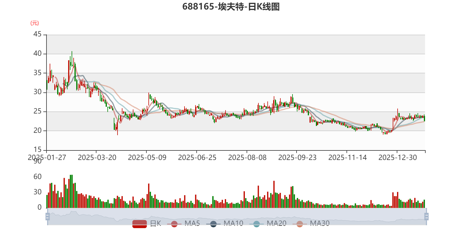 中证智能财讯埃夫特(688165)1月26日晚间披露2025年度业绩预告,预计2025年实现营业收入8.9亿元至9.5亿元,同比下降30.82%-35.19%;归母净利润亏损4.5亿元至5.5亿元,上年同期亏损1.57亿元;扣非净利润亏损5亿元至6亿元,上年同期亏损2.36亿元。以最新收盘价计算,市净率(LF)约7.85倍,市销率(TTM)约12.8倍。