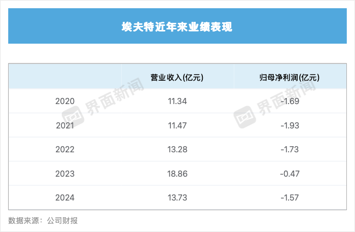 自2020年上市以来,埃夫特始终处于亏损状态。2020-2024年,该公司累计亏损超7亿元。