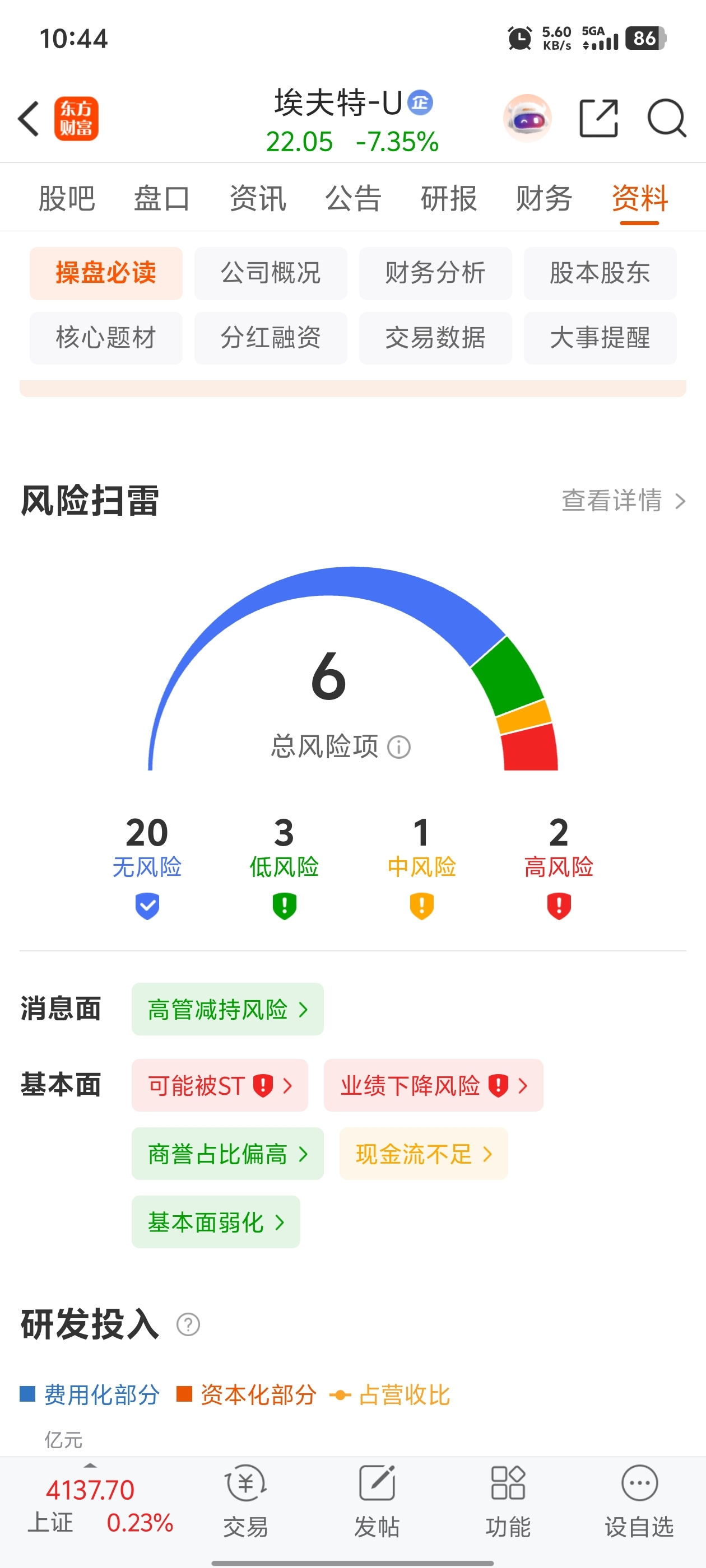 $埃夫特-U(SH688165)$ 踩雷了,没注意看