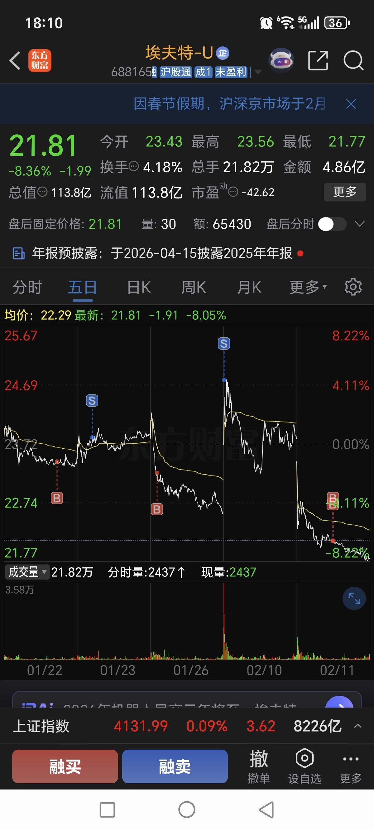 $埃夫特-U(SH688165)$ 薅到其退市