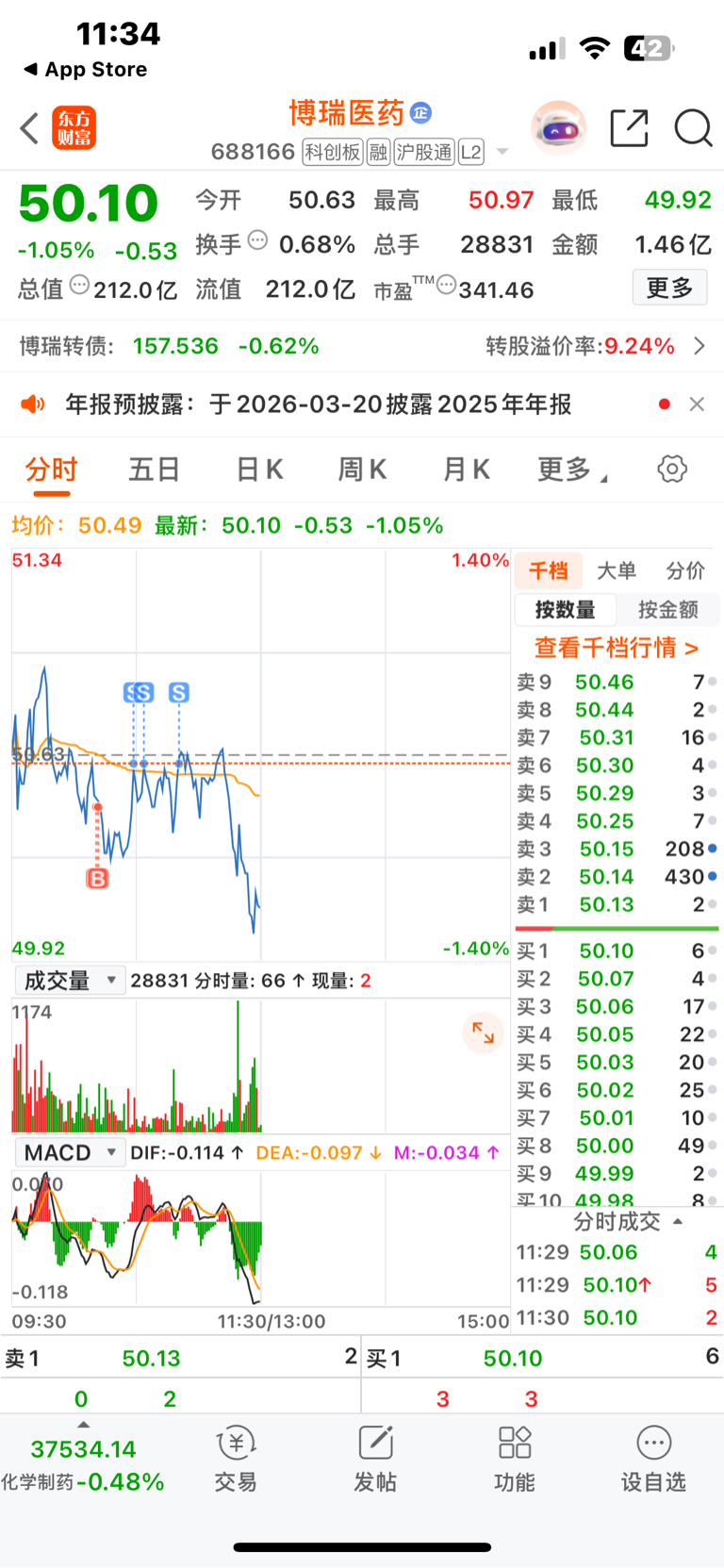 $博瑞医药(SH688166)$ 蚊子再小也是肉,主力不作为,那就只能自己觅食吃了