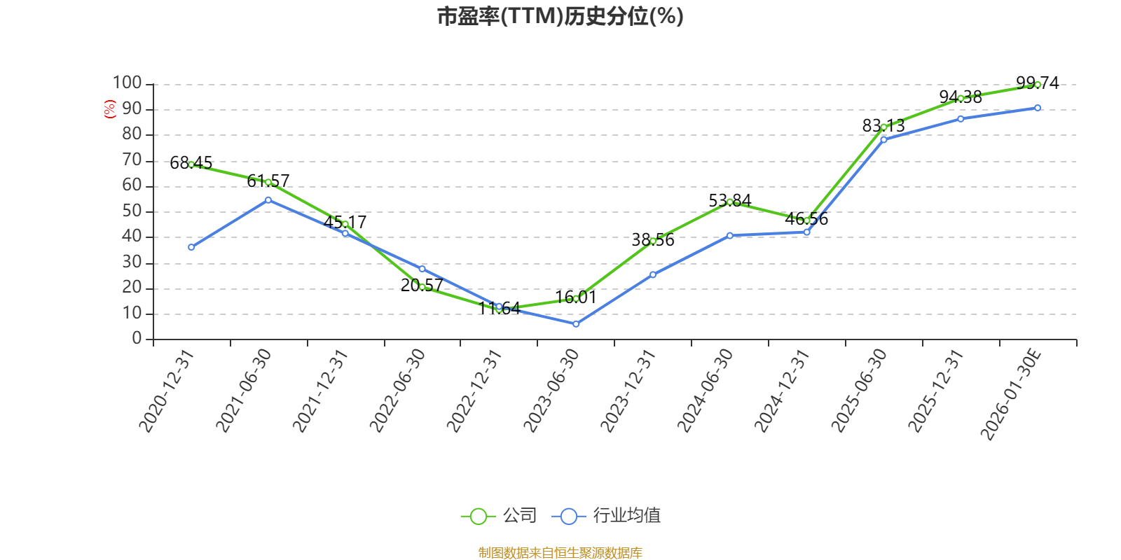 市盈率、市净率为负时,不显示当期分位数,会导致折线图中断。