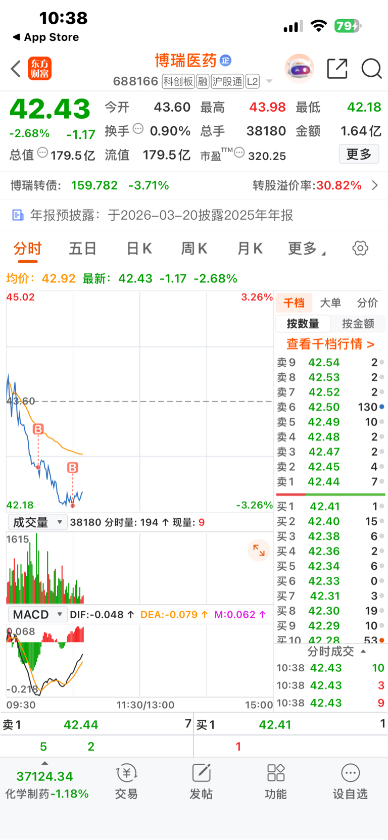 $博瑞医药(SH688166)$ 还是四层,今天不做T了,随便跌