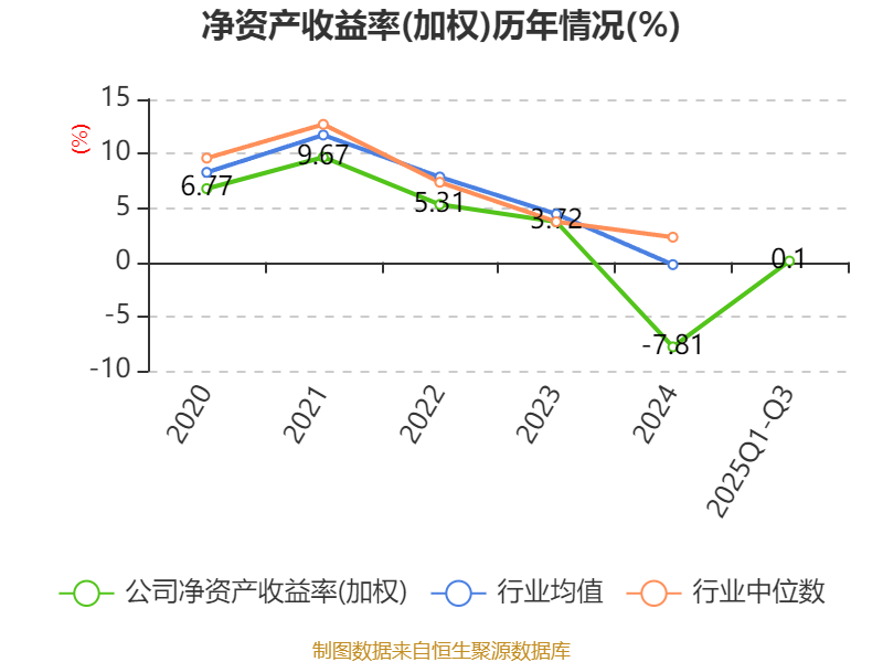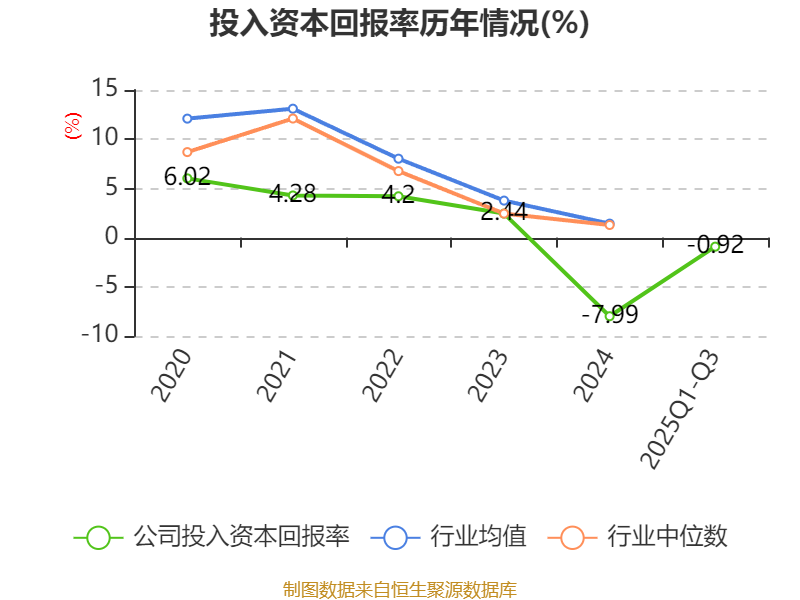 盈利能力方面, 2025年前三季度公司加权平均净资产收益率为0.1%,同比上升2.32个百分点。公司2025年前三季度投入资本回报率为-0.92%,较上年同期上升1.74个百分点。